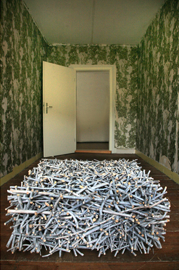 L-OOUA-05, Reisig, Stahl, Holz, Farbe, 89 x 89 x 35 cm, 2005