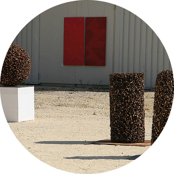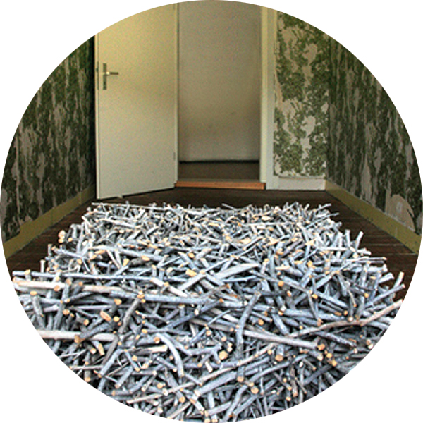 Lied-OBNN-07 Reisig, Stahl, je 28 x 28 x 12 cm, 2007 Lied OKDQ I bis III-07 L-OOUA-05 Reisig, Stahl, Holz, Farbe, 89 x 89 x 35cm, 2005 L-OKUH-07 I-III Reisig, Stahl, Holz, Farbe, 18 x 34 cm L-OORT-07 o. Afrika 1 Reisig, Stahl, 76 x 30 x 33 cm, 2007 Lied-OHCS07 69 x 44 x 33 cm, 2007 L-OUGE-04, L-OAGL-05, L-OHUZ-07 links: L-OUGE-04, 2004, Reisig und Stahl, 80cm Durchmesser, Mitte: L-OAGL-05, Reisig, Stahl, 102 x 52cm, rechts: L-OHUZ-07, Reisig und Stahl, 109 x 52cm