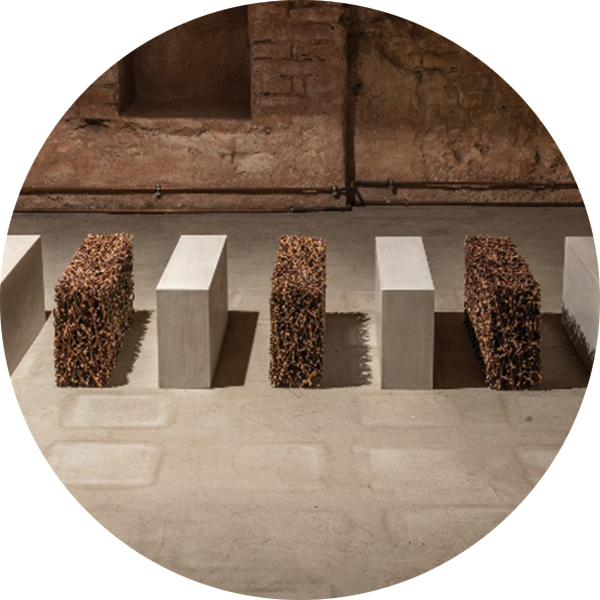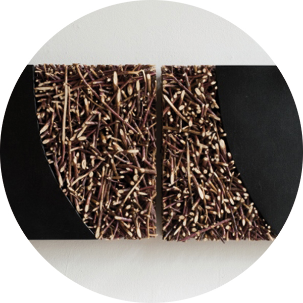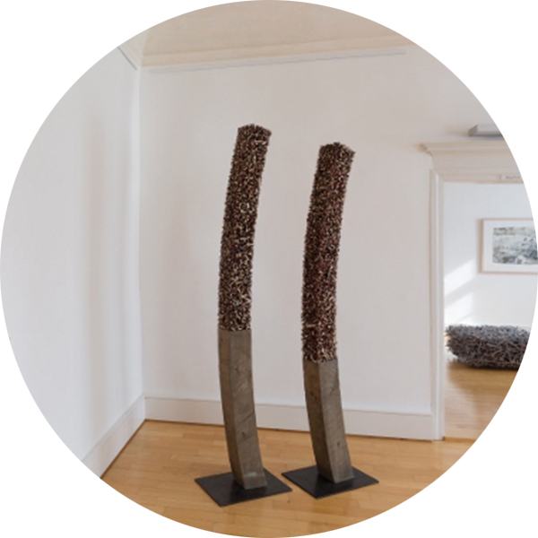 LIED-P477-15 Prägedruck, Unikat, 98 x 68 cm, 2015 LIED-P573-16 Prägedruck, Unikat, 125 x 100 cm, 2016 LIED-P575-16 Prägedruck, Unikat, 90 x 90 cm, 2016 LIED-O023-07 Reisig, Holz, Stahl, Farbe, 9-tlg.: je 31,5 x 15 x 70 cm, 2007 LIED-O136-12, LIED-O010-05, LIED-O023-07 vorne: Reisig, Stahl, Durchmesser 70 cm, 2012; links: Reisig, Stahl, 3-tlg.: je 30 x 31 x 63,5 cm, 2005; hinten: Reisig, Holz, Stahl, Farbe, 9-tlg.: je 31,5 x 15 x 70 cm, 2007 LIED-O061-09, LIED-O175-15, LIED-O176-16, LIED-O035-05 links: Reisig, Stahl, Farbe, 2-tlg.: je 190 x 50 x 30 cm, 2009; mitte: Reisig, Holz, Stahl, 225 x 15,5 x 15,5 cm, 2016; rechts: Reisig, Stahl, Farbe, 36 x 90 x 90 cm, 2005 LIED-O201-15 Holz, Reisig, Stahl, Farbe, 3-tlg.: je 24 x 68 x 11 cm, 2015 LIED-O159-13 Holz, Stahl, Farbe, 91 x 24 x 6 cm, 2013 LIED-O231-16 Reisig, Holz, Stahl, Farbe, 2-tlg.: je 24 x 24 x 7,5 cm, 2016 LIED-O215-16 Reisig, Stahl, Durchmesser 47 x 24 cm, 2016 LIED-Oo38-04/16 Reisig, Holz, Stahl, Farbe, 69 x Durchm. 44 cm, 2016